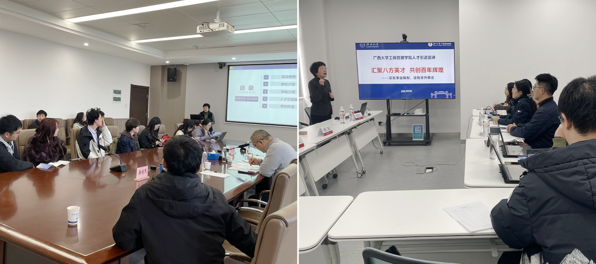 人才支持政策和措施,潘羽杰结合自身入职体会分享交叉研究心得,朱帮助针对职业发展、考核激励、有组织科研等问题与应届博士毕业生和博士后坦诚交流。宣讲现场气氛热烈,交流深入共收到优秀博士毕业生简历36份,取得了显著成效。